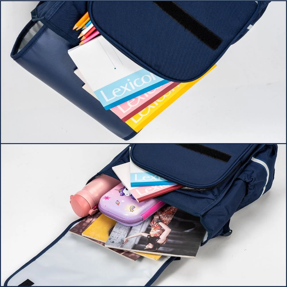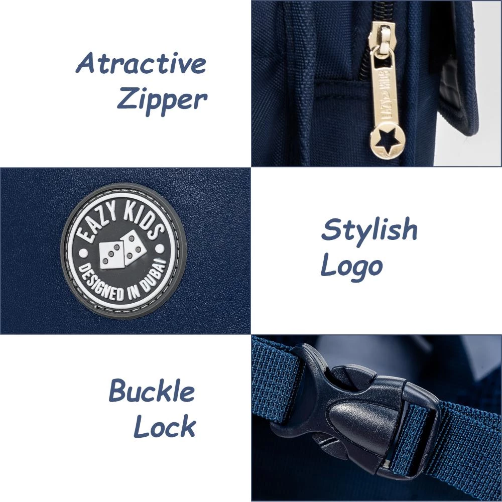 eazy kids school backpack, kids blue backpack, 14 inch school bag, back to school backpack, waterproof kids bag, laptop kids backpack, ergonomic school bag, reflective strip school bag, lightweight kids backpack, kids school supplies