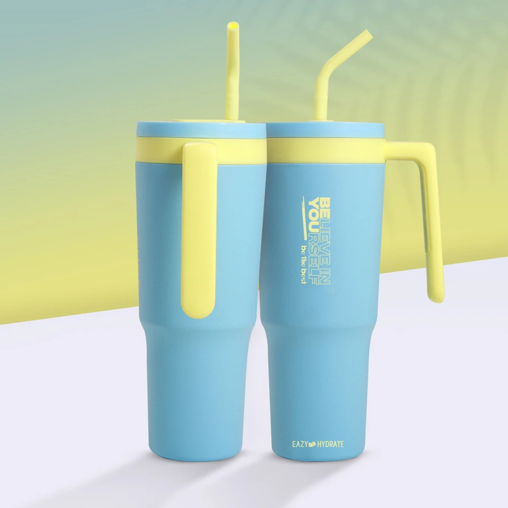 eazy kids tumbler, insulated tumbler, large capacity tumbler, stainless steel tumbler, blue travel tumbler, hot and cold tumbler, reusable drink tumbler, eco friendly tumbler, leak proof tumbler, sports tumbler, school tumbler, office drinkware, outdoor tumbler, durable stainless steel tumbler, double wall insulated tumbler