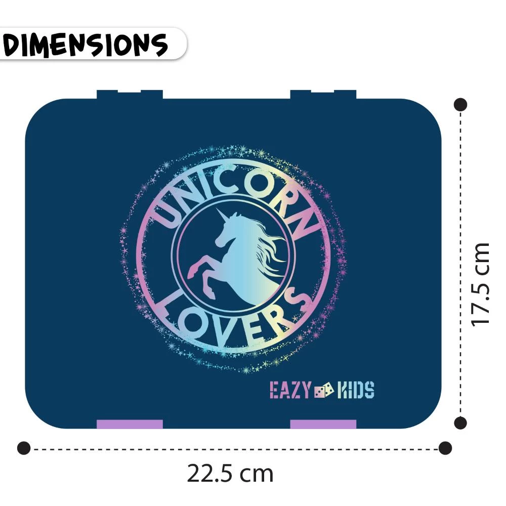 unicorn lovers kids lunch box, bento lunch box with cutter set, Eazy Kids unicorn lunch combo, BPA free Tritan bento box, kids insulated lunch bag combo, convertible compartments lunch box, lunch box with fruit picks and stickers, leakproof bento lunch box, school lunch set for kids, magical unicorn lunch kit