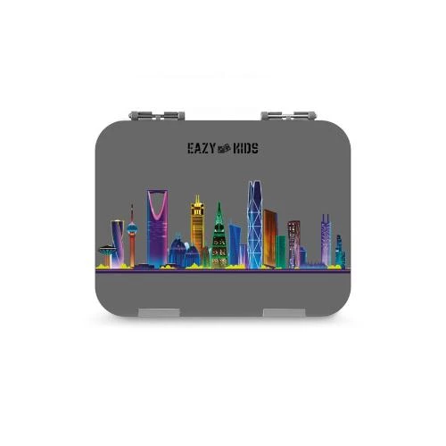 Make everyday lunches delightful and hassle-free with the Eazy Kids Bento Boxes with Insulated Lunch Bag Combo in the elegant Love Riyadh Grey design. This thoughtfully curated combo includes a stylish 4-compartment Bento lunch box and a premium insulated lunch bag, crafted for kids and teens who enjoy their meals fresh and organized. The Bento box is made from Tritan, a BPA- and BPS-free material known for its safety and durability, with each compartment sealed individually by a removable silicone layer, ensuring a leakproof experience for thick yogurts and sauces. It's dishwasher safe (top rack) and microwave safe (inner tray), making meal prep and cleaning effortless. The matching lunch bag is designed with Twill Oxford fabric and lined with 5mm EPE thermal foam and aluminum foil, offering superior insulation to keep meals fresh for hours. With a 7L capacity, it fits lunch boxes of various sizes and features a detachable shoulder strap and anti-slip grab handle for easy carrying. This combo offers a stylish and functional lunch solution for school, travel, or outings.