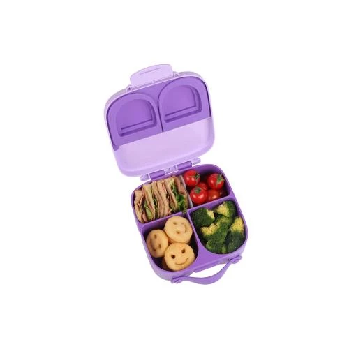 eazy kids bento lunch box, bento lunch box purple, lunch box with handle, kids lunch box 4 compartments, adjustable compartment lunch box, bpa free lunch box, food grade lunch container, school lunch box, portable kids lunch box, silicone handle lunch box