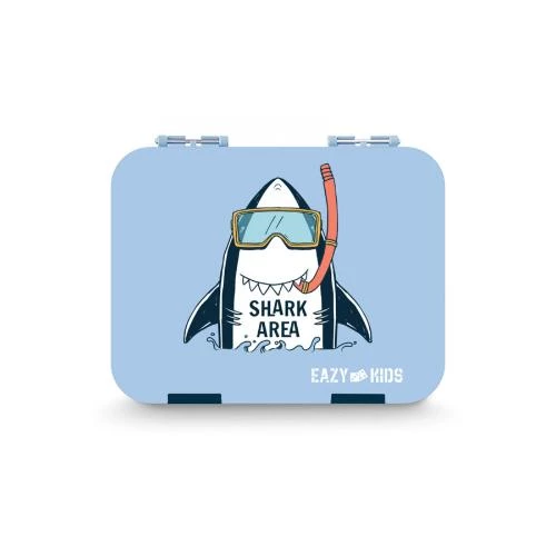 eazy kids bento box shark, super shark lunch box set, 4 compartment kids bento, tritan lunch box for school, leakproof shark lunchbox, insulated lunch bag combo, toddler lunch box with strap, boys lunch bag and box set, kids microwave safe lunch box, waterproof kids lunch bag