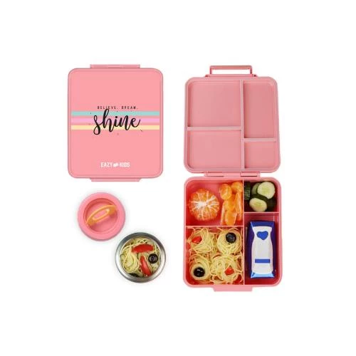 Eazy Kids Bento Lunch Box with Insulated Steel Jar & Bag Combo -Shine Unicorn Pink -Leakproof & Thermal