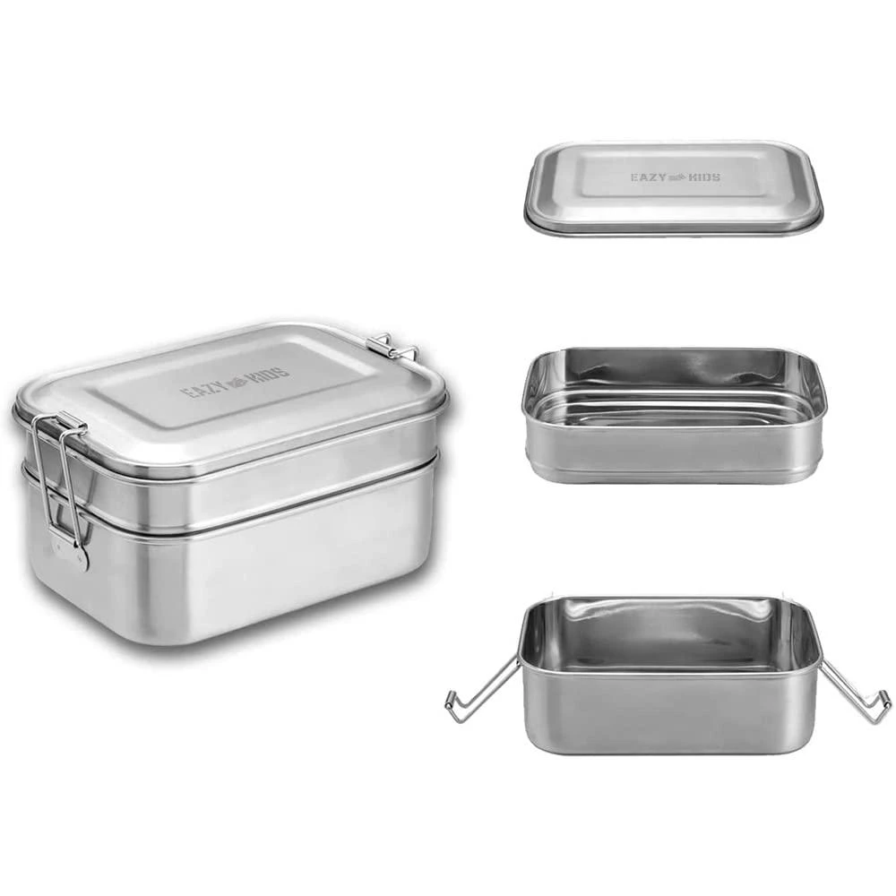 stainless steel lunch box, bento lunch box kids, office lunch container, leak proof lunch box, dual compartment lunch box, eazy kids lunch box, large bento box, school lunch box steel, eco-friendly lunch container, BPA free lunch box