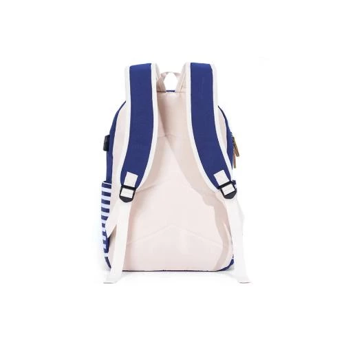 The Eazy Kids Classic School Bag in Blue Striped design by SAMBOX combines style, durability, and functionality to suit the needs of middle school, high school, and college kids. Crafted from eco-friendly, strong polyester canvas, this XL backpack offers a roomy 27L capacity while remaining lightweight at just 0.65 kg. It features multiple compartments including a front lid button pocket with belt, a large main compartment with a padded laptop/tablet pocket fitting up to 15.6 inches, inside zipper pocket, and two side pockets for organized storage. Solid and sturdy zippers with firm pullers ensure easy and long-lasting use. Designed ergonomically, the adjustable shoulder straps come with a trolley strap that prevents pressure on growing backs. The bags durable, waterproof material keeps essentials safe and clean, and the beautiful detachable unicorn keychain adds a playful charm. Machine washable for easy care, this backpack is perfect for school or college use and makes a fantastic back-to-school gift.
