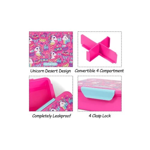 unicorn lunch box pink, kids bento box unicorn, leakproof school lunch box, BPA free food container, microwave safe kids tiffin, eco friendly unicorn lunch box, cute lunch box for girls, school meal box with compartments, eazy kids unicorn lunchbox, convertible bento box for kids