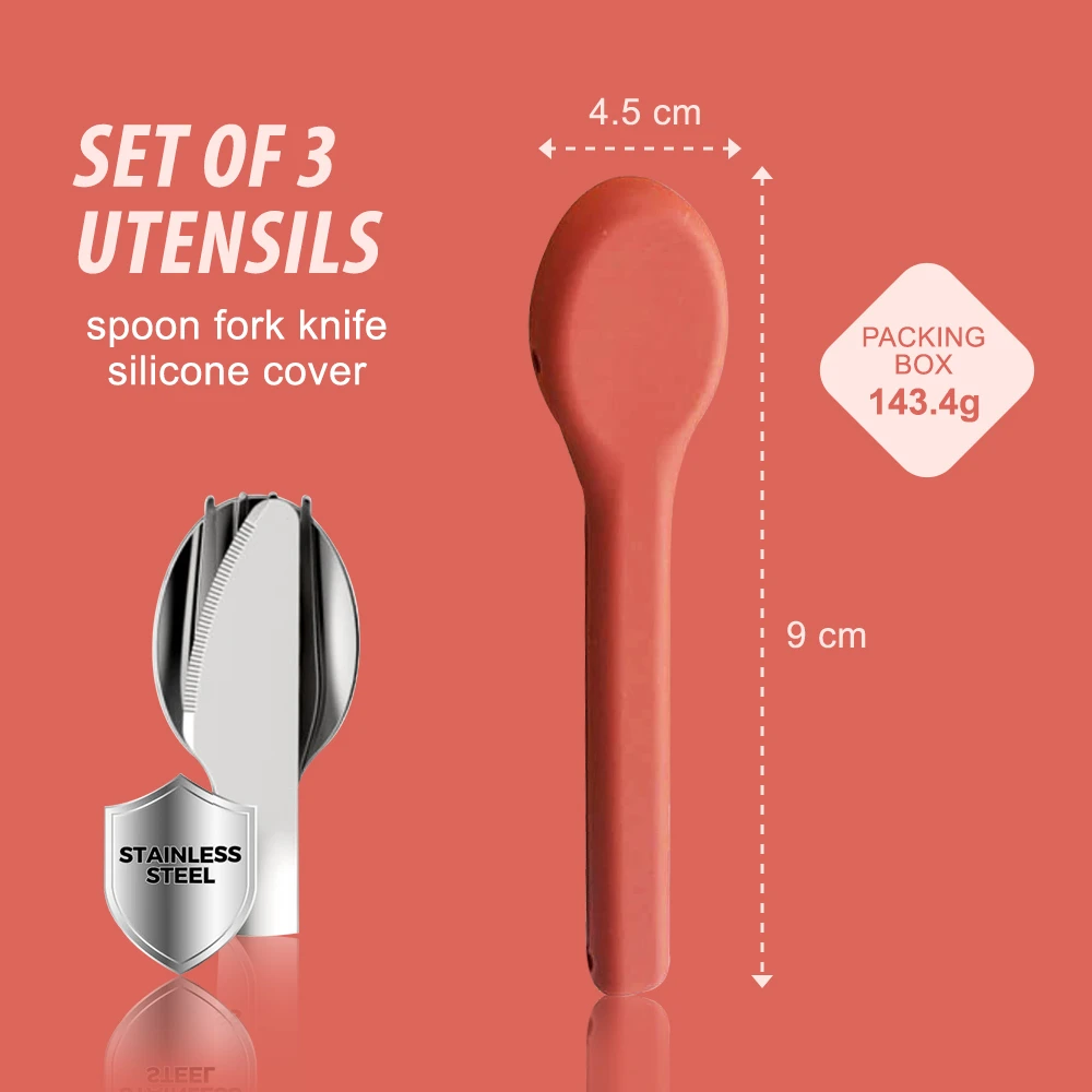 Eazy Kids Cutlery Set - Stainless Steel Spoon, Fork & Knife with Silicone Case (Pink)