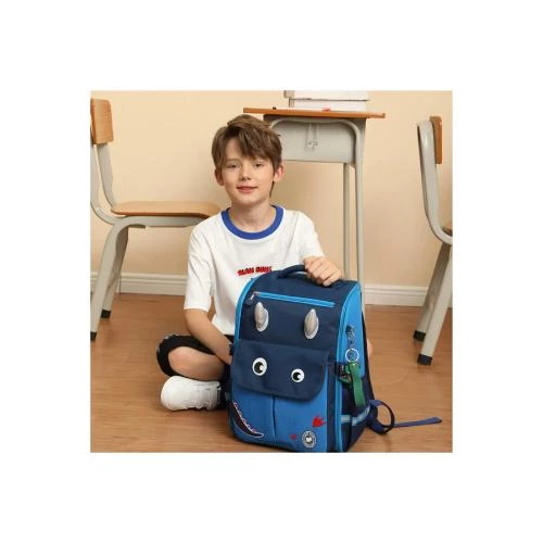 Let your child roar into school with excitement carrying the Eazy Kids Dinosaur School Bag in Blue by SAMBOX-an adventurous and educational design that sparks curiosity in young minds! Crafted from durable, dirt-resistant, and waterproof polyester, this bag is built to withstand the rough and tumble of school life while keeping essentials safe and dry. The standout 3D structure ensures the backpack maintains its shape and securely holds books, stationery, and other school items. Designed for growing children, it features an ergonomic padded back and adjustable wide straps for comfortable wear all day long. With two front pockets (a twin-pocket with lid and a zippered pouch), a spacious main compartment with a 14-inch laptop sleeve, and two side pockets for bottles or snacks, theres a place for everything. The full front-opening zipper provides quick and wide access, while reinforced zippers and sturdy pullers ensure long-lasting durability. Finished with reflective safety strips for visibility during nighttime or early-morning travel, this bag is both a fun and functional back-to-school gift your child will love.