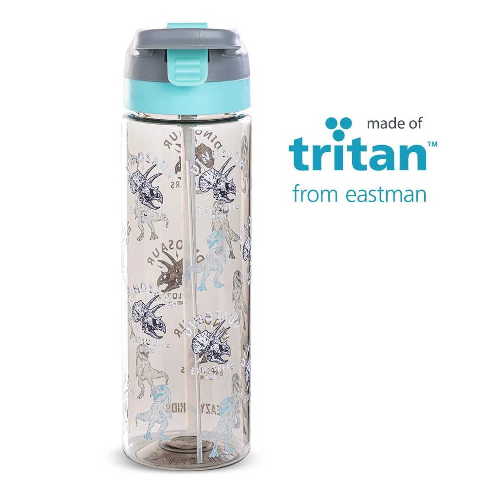 Eazy Kids Dinosaur Tritan Water Bottle with Spray 750ml - Grey