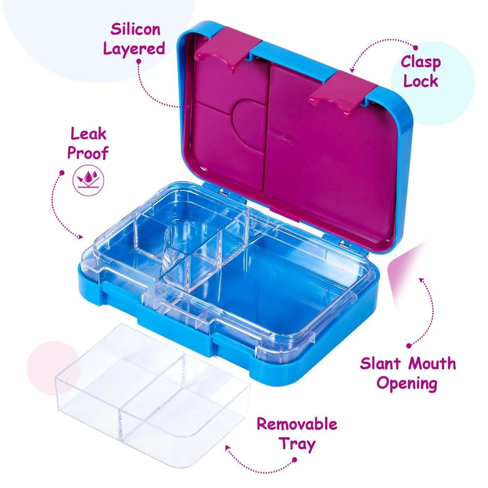 frozen bento box, elsa anna lunchbox, disney tritan lunch container, leakproof food box, 6 compartment lunchbox, 4 compartment food container, reusable lunch box, girls school lunch, princess snack box, blue lunch container