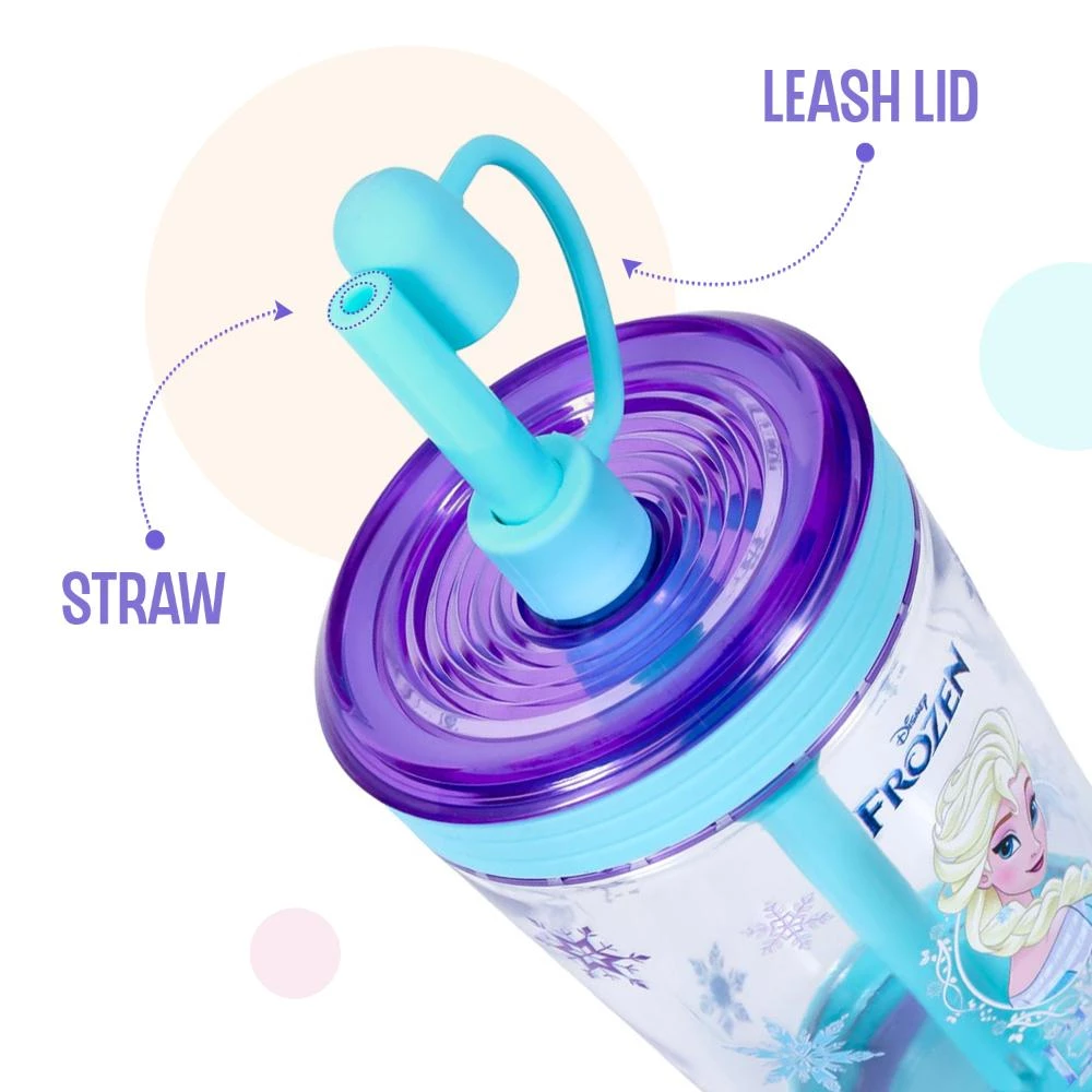 Eazy Kids Disney Frozen Elsa Sipper Tumbler Water Bottle - 480ml Leakproof Tritan Bottle with Straw & Leash Lid - Blue