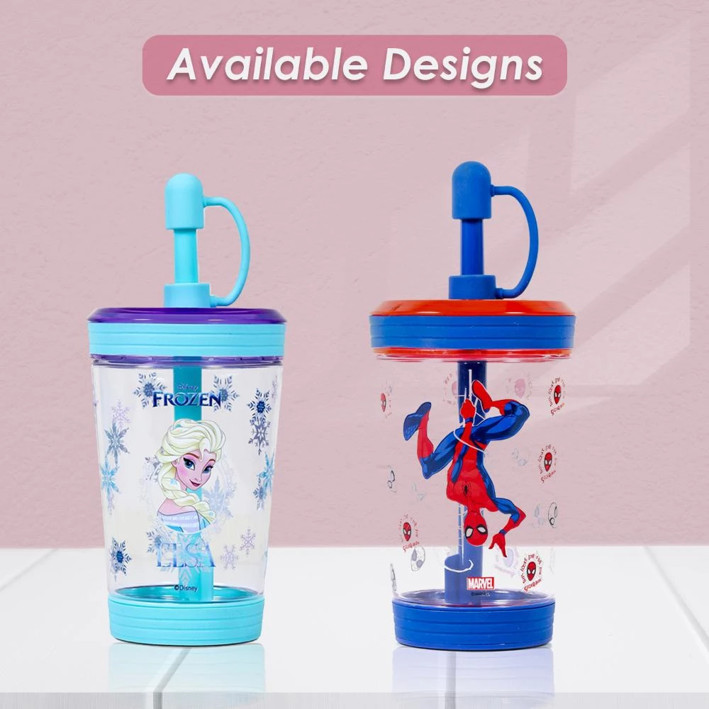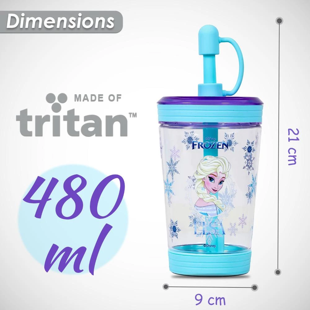 Stay cool and hydrated with the Disney Frozen Elsa Sipper Tumbler Water Bottle by Eazy Kids. Crafted from BPA- and phthalates-free Tritan material, this 480ml bottle is safe, eco-friendly, and built for everyday use. The clear blue tumbler features stunning Frozen-themed prints and includes a silicone-lined, leakproof sipper lid with a straw and leash handle for easy carrying. Perfect for school, outings, or after-school activities, the bottle is freezer-safe, dishwasher-safe (without lid, top rack), and suitable for warm liquids. Bonus: Each bottle includes a reusable food-grade silicone straw topper for a magical drinking experience. Pair it with a matching Frozen lunch box for the ultimate hydration set.