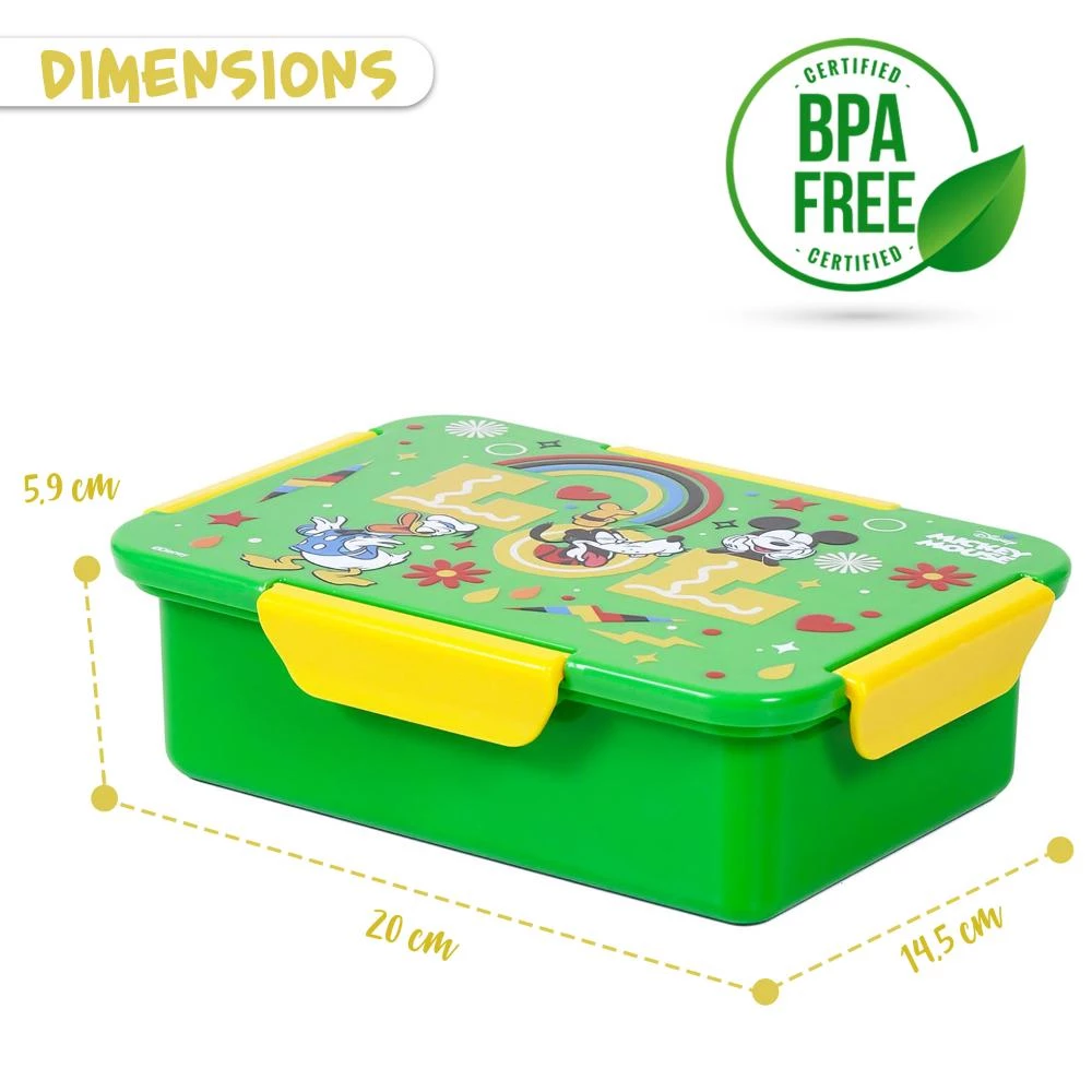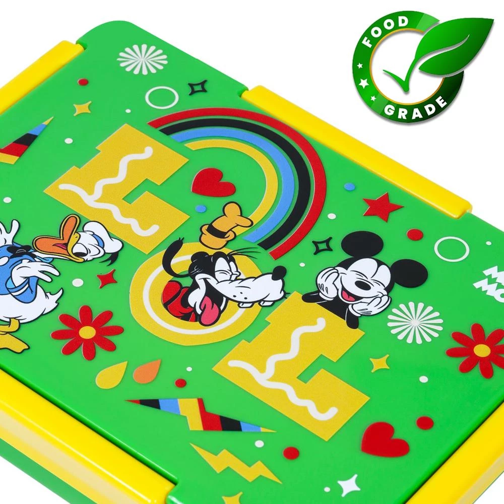 mickey mouse lunch box, disney green lunch box, kids bento tiffin, leakproof lunch container, BPA free kids lunch gear, eco friendly food box, adjustable compartments lunch box, school meal container, cartoon bento box, disney back to school essentials