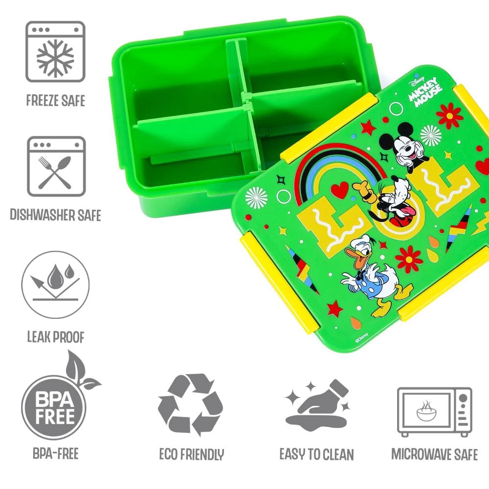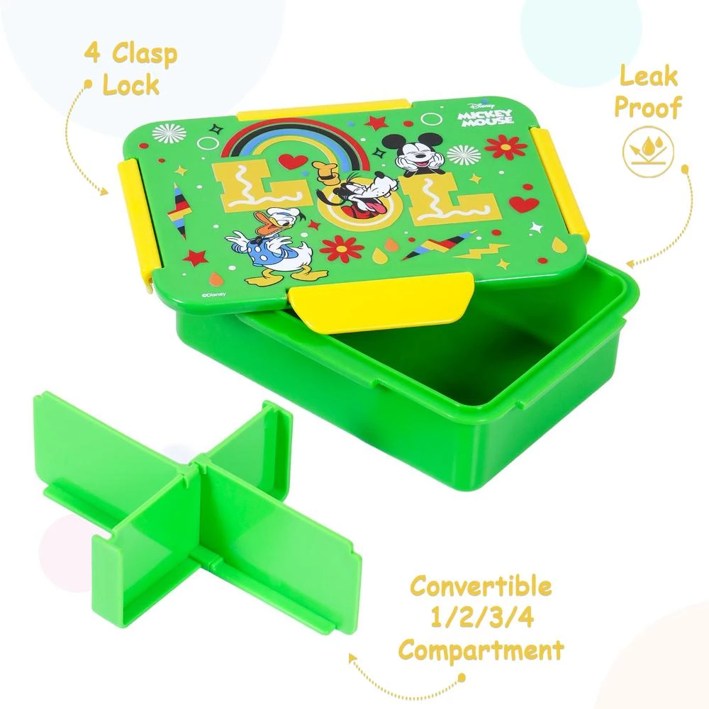Eazy Kids Disney LOL Mickey Mouse Convertible Bento Lunch Box - 1 to 4 Leakproof Compartments - Green