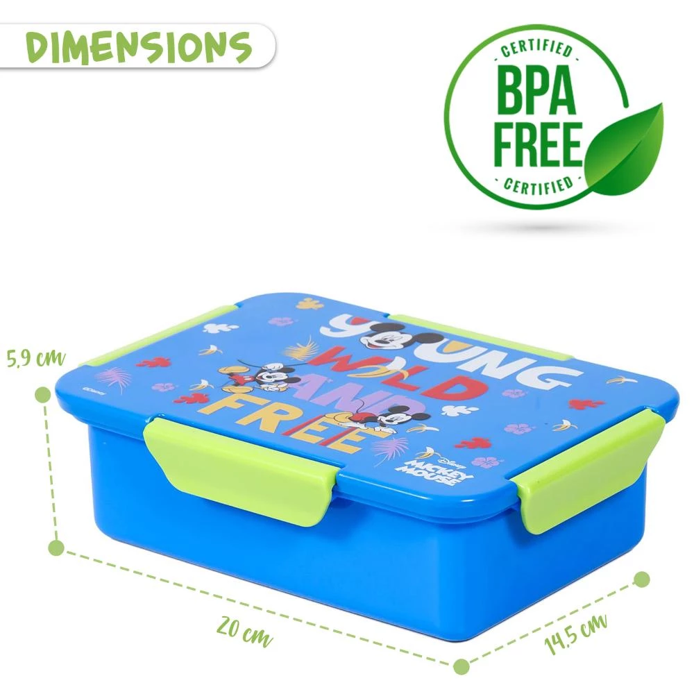 Bring a smile to every bite with the Disney Mickey & Friends Convertible Bento Lunch Box in vibrant blue. Showcasing a fun and colorful Mickey Mouse and Friends design, this lunch box by SAMBOX is the ideal combination of character charm and functionality. Crafted from non-toxic, BPA- and phthalate-free materials, its safe for daily use. With a spacious 850ml capacity, this bento box features a flexible design with 1 to 4 compartments for organizing a complete meal. The 4-clasp locking system and silicone-sealed lid make it 100% leakproofperfect for thick sauces and dips. Lightweight and easy to carry, it's safe for the freezer, microwave (without lid), and dishwasher (without lid, top rack). Pair it with a matching Mickey & Friends bottle for the ultimate lunch set!