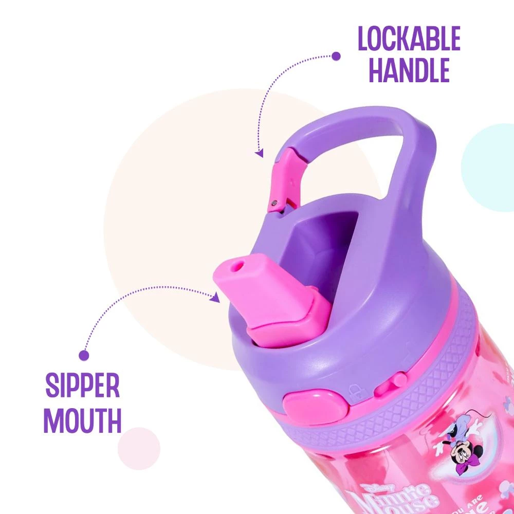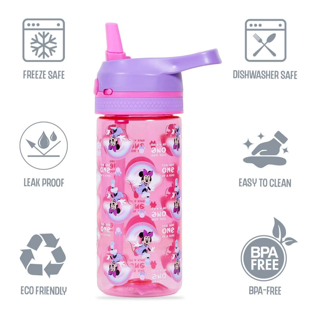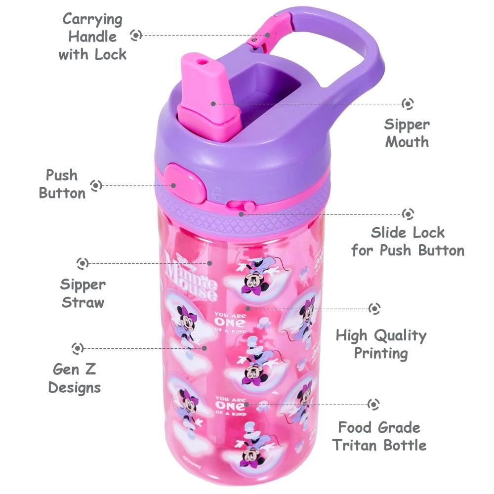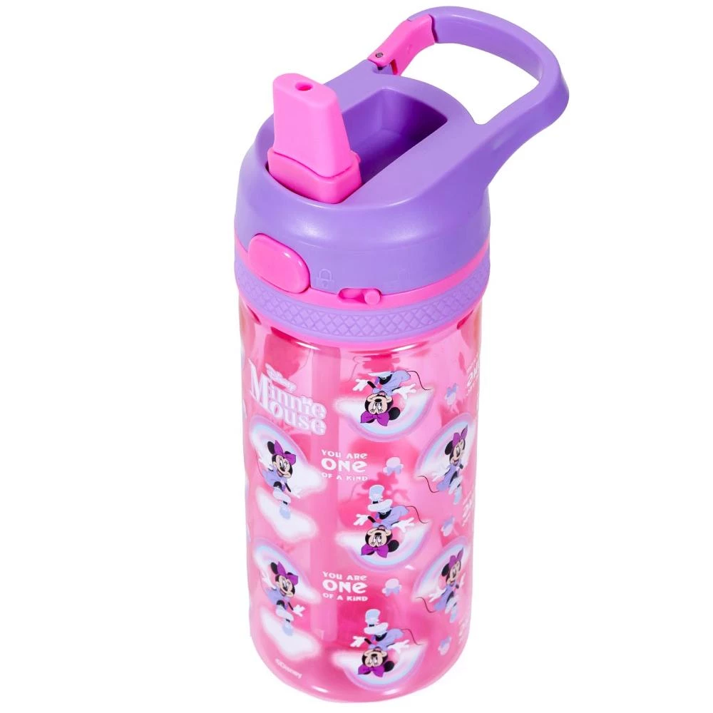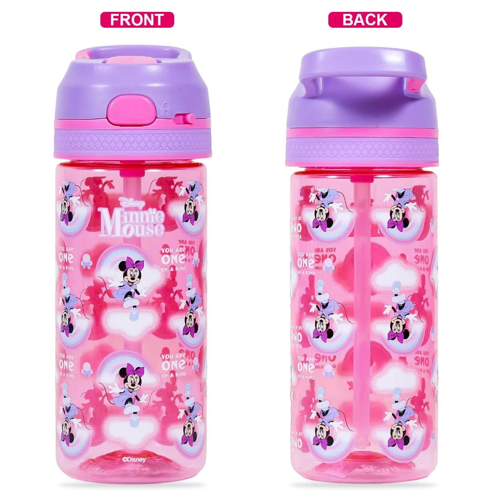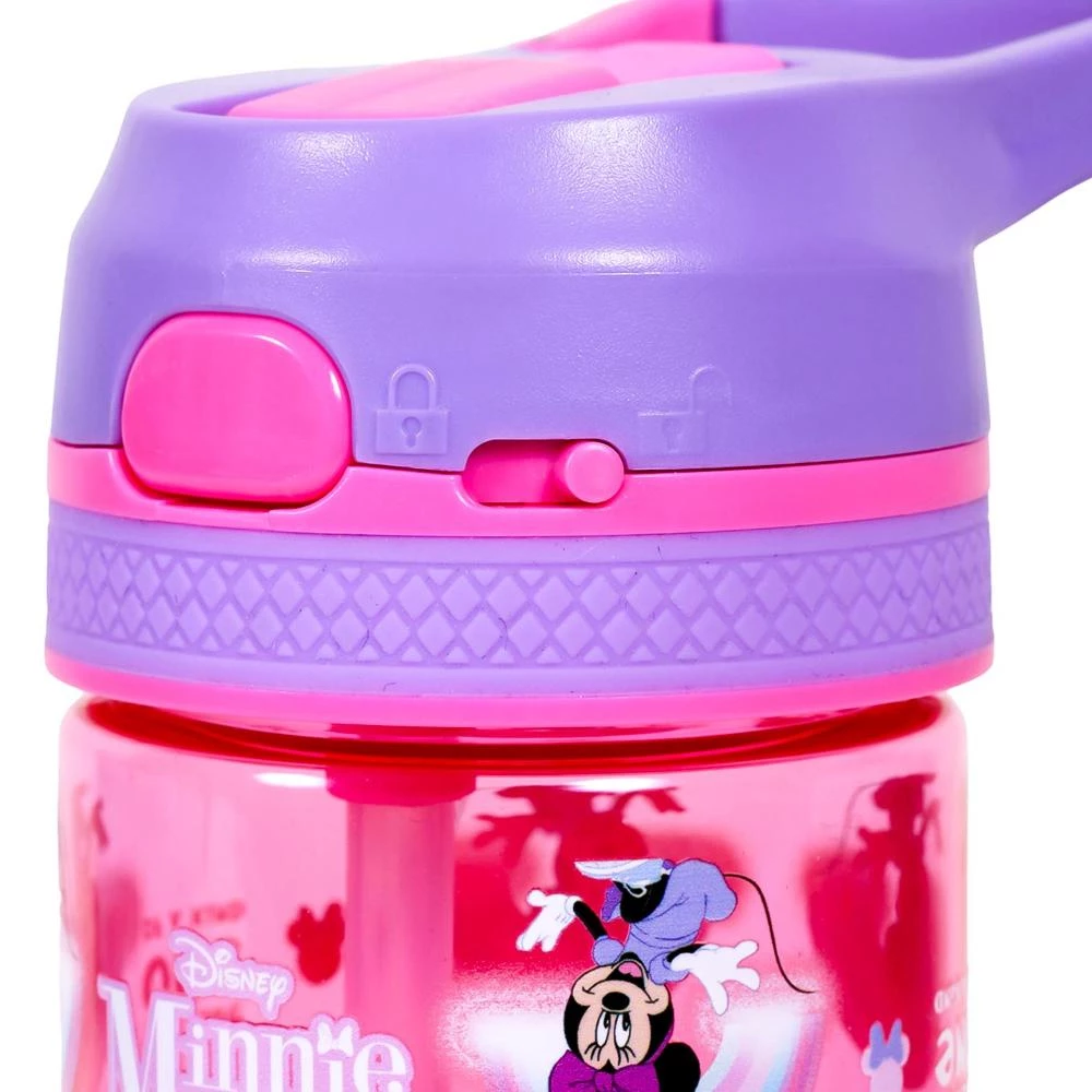 minnie mouse water bottle, disney girls bottle, pink school bottle, leakproof kids bottle, BPA free water bottle, tritan hydration bottle, water bottle with lock button, eco friendly kids drinkware, back to school disney gear, cartoon water bottle