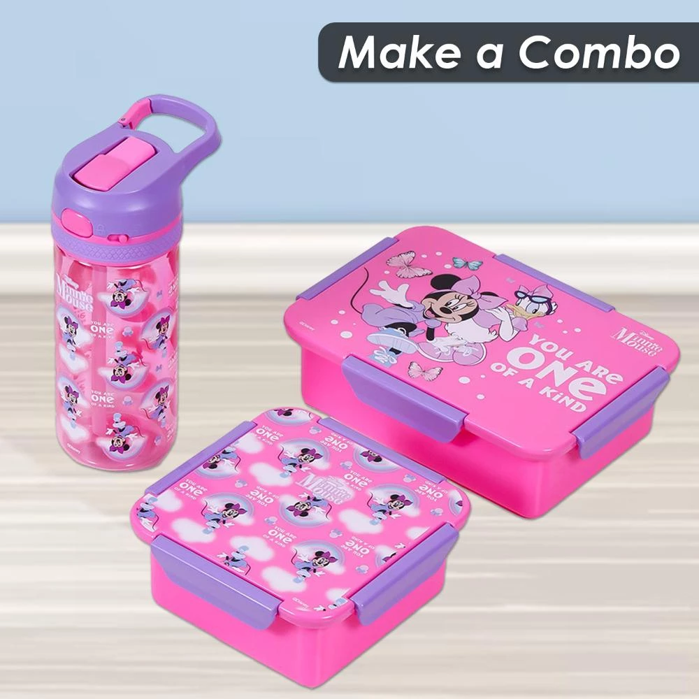 Make hydration stylish and fun with the Disney Minnie Mouse Tritan Water Bottle in charming purple and pink. Adorned with cheerful Minnie Mouse graphics, this 420ml bottle is crafted from recyclable, BPA-free, non-toxic materialssafe, durable, and easy to clean. Its sipper lid is sealed with a silicone lining for a completely leakproof design, while the secure lockable push button prevents accidental spills. The built-in carry handle makes it ideal for school, playdates, or travel. Freezer-safe, dishwasher-safe (top rack without lid), and warm watersafe, its the perfect hydration companion. Match it with a Minnie-themed lunch box for a delightful back-to-school combo!