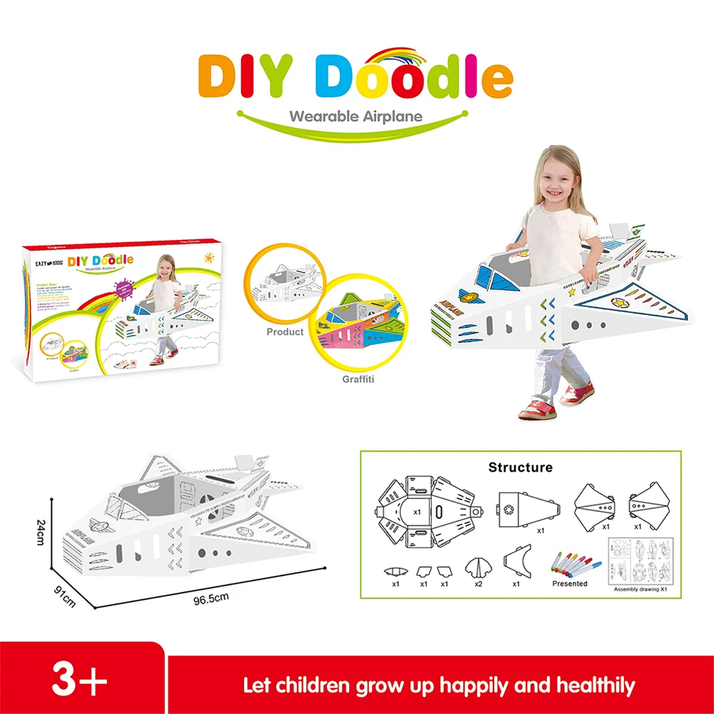 diy coloring kit, wearable airplane toy, doodle activity, eazy kids craft kit, cardboard airplane, sketch pens included, creative play set, interactive coloring kit, eco friendly toy, imaginative activity, role play toy, artistic kids kit, indoor craft fun, kids diy set, airplane costume, build and color toy, coloring and play combo, foldable craft kit, arts and crafts set, educational play kit