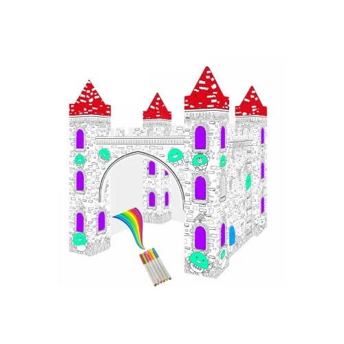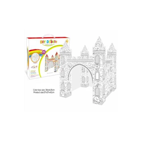 diy castle coloring kit, erasable castle doodle, reusable painting kit for kids, 3d castle model, eazy kids art project, eco friendly coloring toy, kids creative activity, recycled paper craft, childrens doodling set, educational art kit