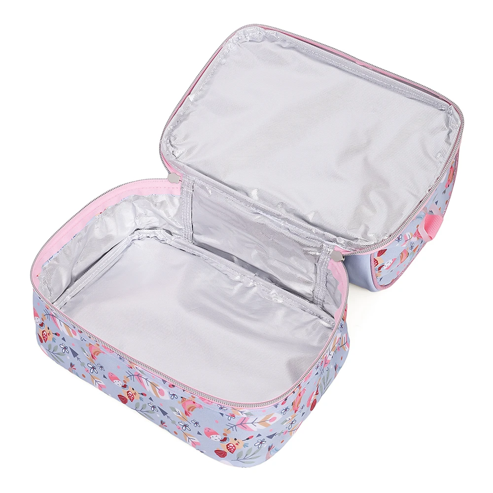 The Eazy Kids Love lunch bag adds a sweet pop of personality to any day. Styled in pink with an adorable heart-themed chrome design, this dual-compartment bag is both beautiful and functional. Each compartment is insulated and padded with foam to keep food and drinks fresh for longer periods. The bag is made from easy-clean, dirt-resistant material that handles everyday messes with ease. A wide opening zipper makes it simple to access meals and snacks, while the adjustable, detachable shoulder strap offers flexible carrying options. Whether used for school, day trips, or weekend activities, this bag delivers reliable storage with a cheerful touch.