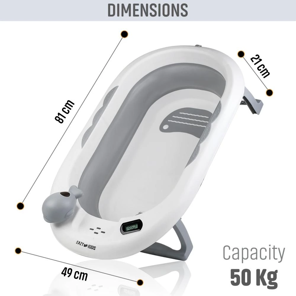 Eazy Kids Foldable Bathtub with Temperature Monitor & Shampoo Rinse Mug - Grey
