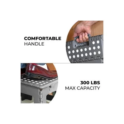 eazy kids foldable step stool, grey foldable stool, portable step stool, lightweight kids stool, non-slip folding stool, potty training stool, compact step stool, carry handle stool, fold-flat step stool, toddler step stool