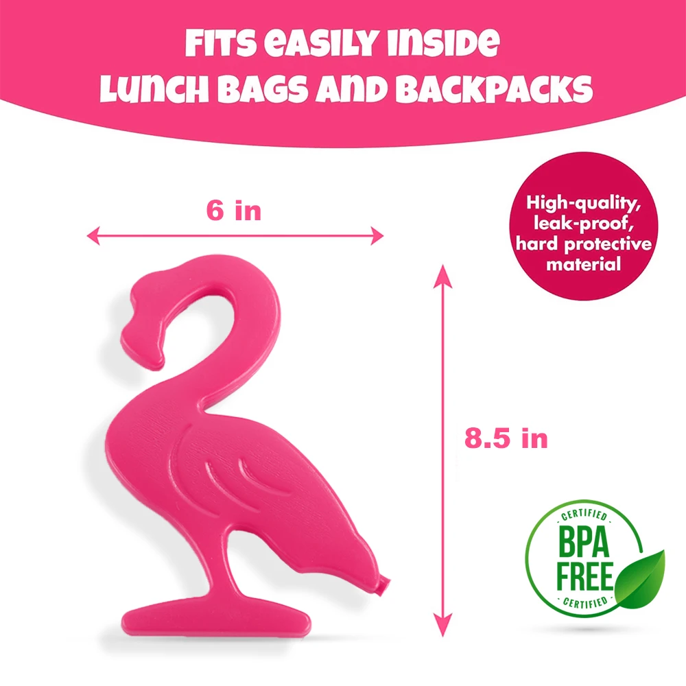 reusable ice packs, flamingo design, pink ice pack, lunch bag accessory, hard gel pack, food safe cooling, eazy kids lunch item, leak proof, long lasting ice block, compact freezer pack, fun lunch accessory, tropical design, bpa free, eco friendly, hard shell cooler pack, freezer safe, multipurpose ice pack, school lunch gear, non toxic cooling gel, travel cooler item