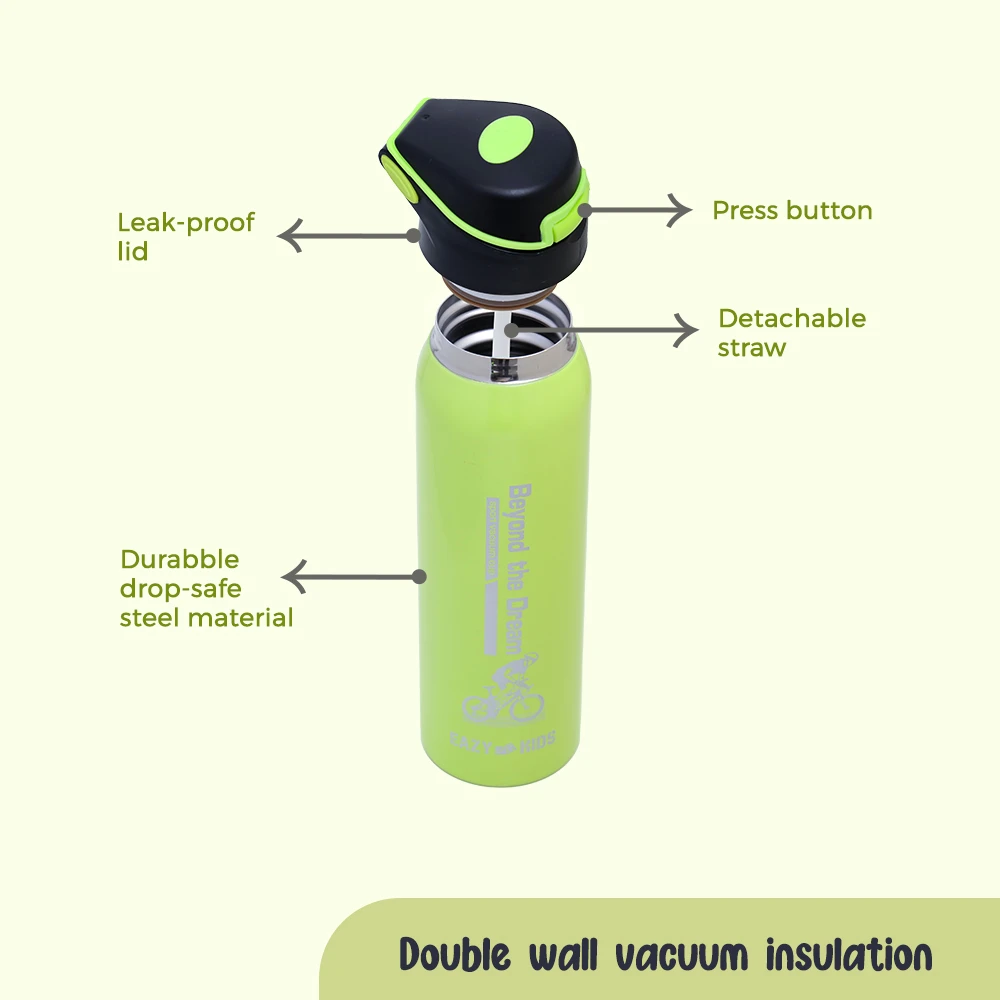 Eazy Kids Insulated School Water Bottle - Green, 500ml