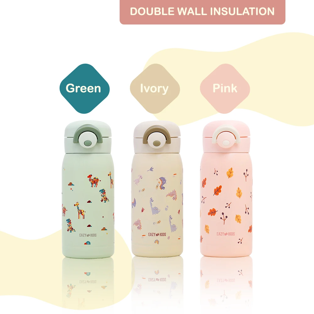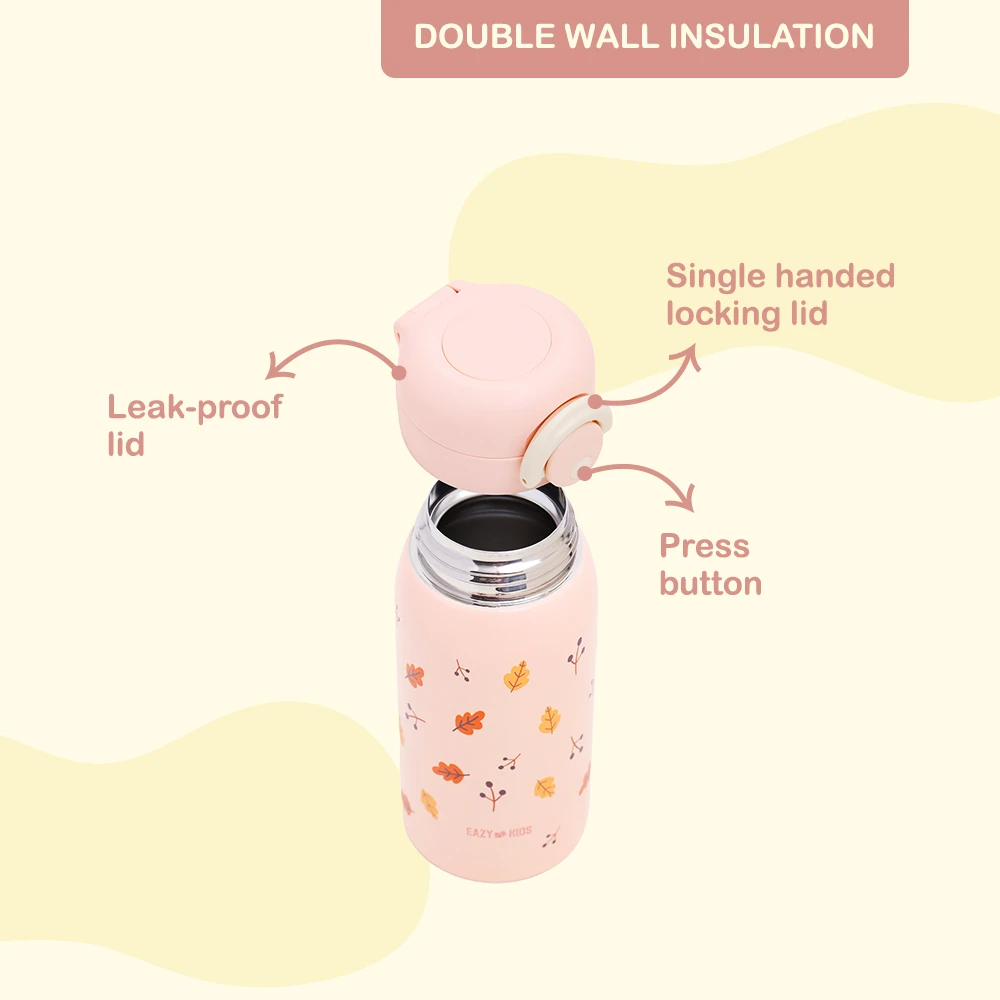 Eazy Kids Insulated School Water Bottle - Pink, 350ml