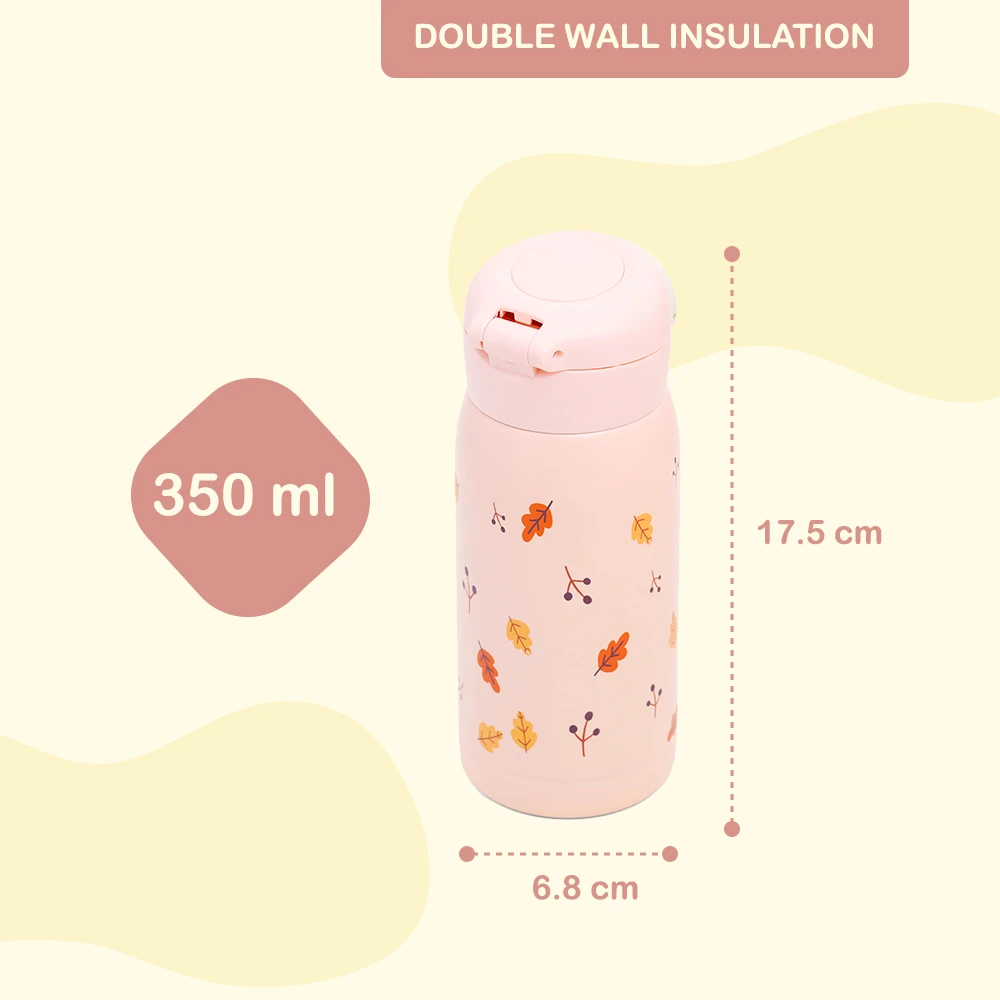insulated water bottle, pink bottle, 350ml bottle, stainless steel bottle, leak proof lid, thermal bottle, food grade steel, bpa free, phthalate free, temperature retention, wide mouth bottle, reusable bottle, eco friendly bottle, hydration bottle, lightweight bottle, school water bottle, spill proof bottle, travel bottle, durable bottle, vibrant bottle