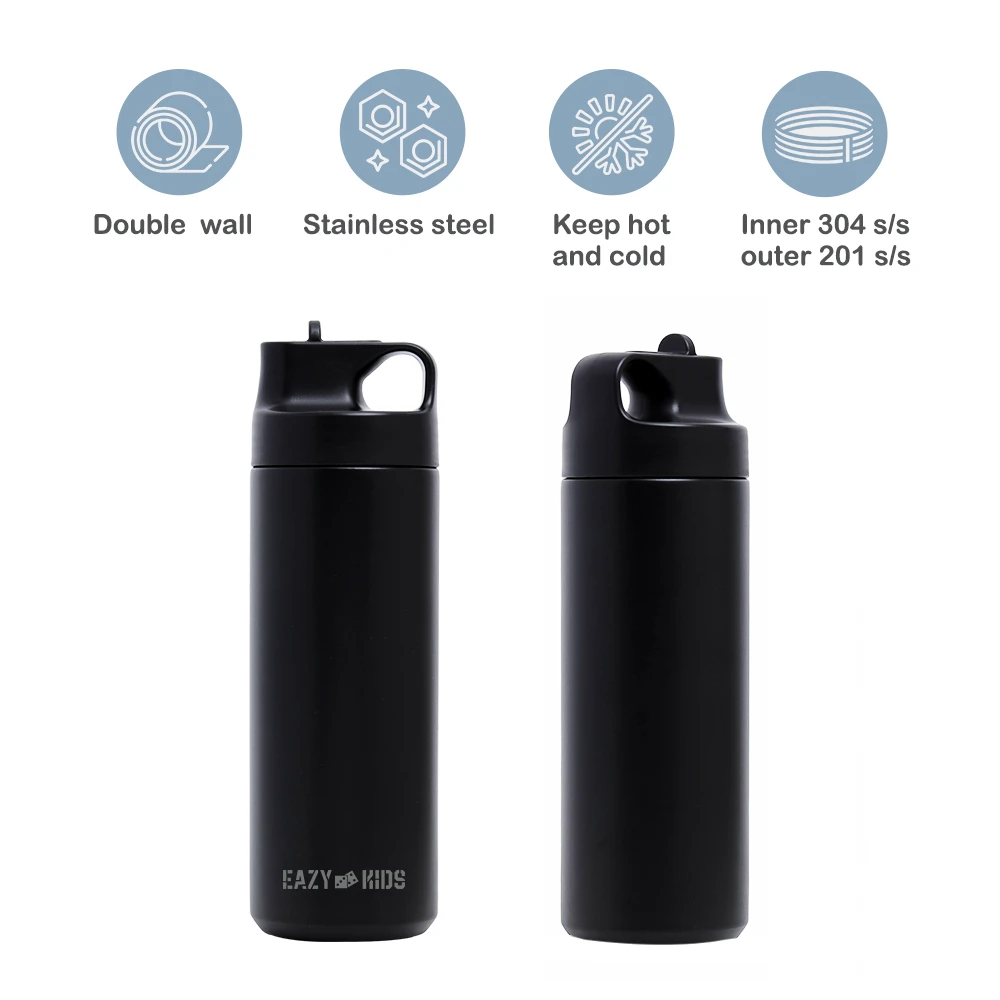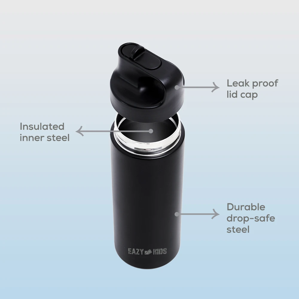 Eazy Kids Insulated Sports Water Bottle - Black, 550ml