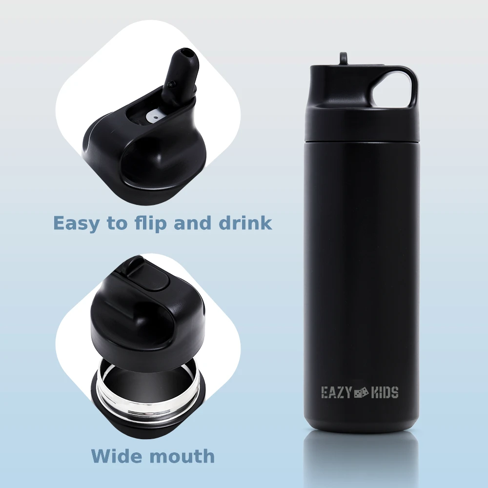 insulated sports bottle, black water bottle, 550ml bottle, straw lid, leakproof bottle, bpa free bottle, large water bottle, easy clean bottle, kids drinkware, travel hydration, school bottle, reusable bottle, portable bottle, flip top bottle, insulated drinkware