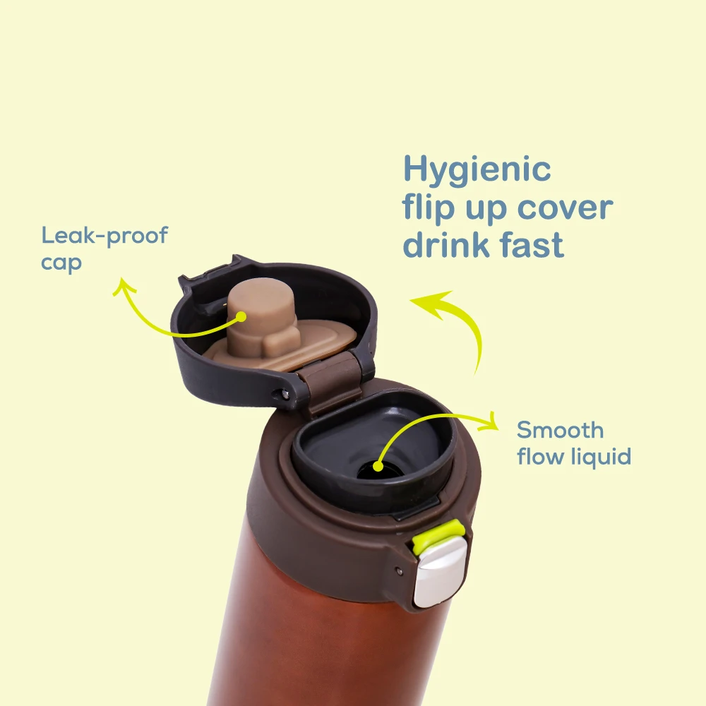 The copper Eazy Kids insulated travel bottle delivers premium function with a touch of elegance. Designed with double-wall stainless steel insulation, it keeps drinks hot or cold for hours, making it ideal for travel, school, or work. The material is completely BPA- and phthalate-free, offering safe, fresh-tasting hydration every time. The flip-top lid is spill-resistant and easy to operate, and the bottle’s smooth copper-toned finish brings a luxurious yet durable touch to everyday use. Compact and lightweight, this bottle fits into bags or cup holders with ease, making it a perfect companion for your on-the-go routine.