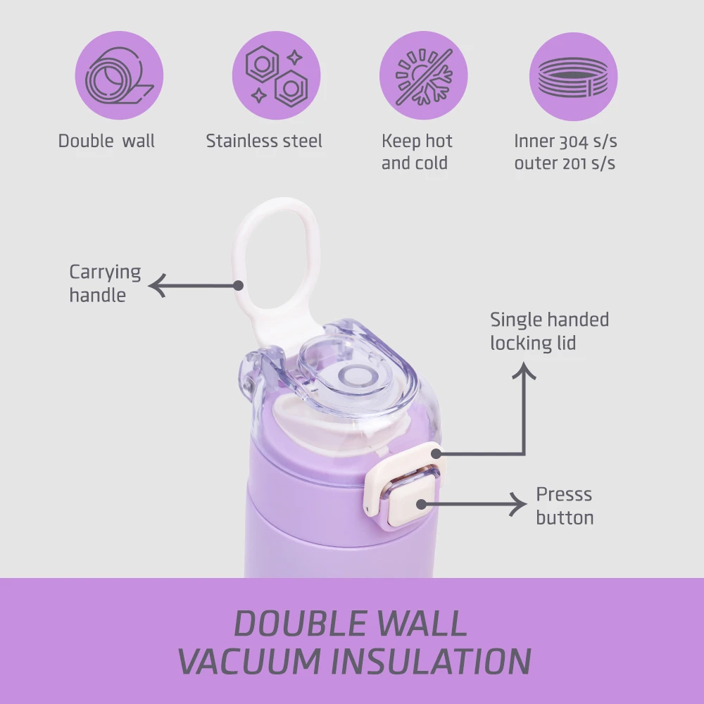 Eazy Kids Insulated Travel Water Bottle - Purple, 550ml