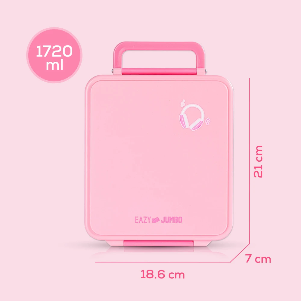 Eazy Kids Jumbo Bento Lunch Box with Thermos & Dip Jar - Pink