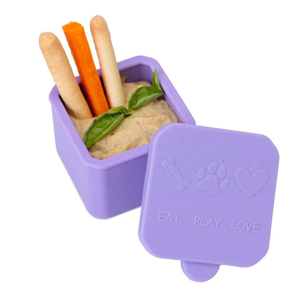 The Eazy Kids jumbo bento lunch box in purple brings mealtime organization to the next level. Featuring a deep four-compartment design and an insulated stainless steel jar, it accommodates both hot and cold foods simultaneously. A sealed silicone dip jar adds even more versatility, perfect for sauces or dressings. The jar keeps food warm for around 5-7 hours or cool for up to 12 hours. Made from BPA-free polypropylene, stainless steel, and food-safe silicone, this lunch box is a safe and stylish meal solution. Designed for everyday school lunches or longer outings, it balances generous capacity with thoughtful organization. The color-coordinated lid features secure latches to prevent leaks, giving peace of mind while on the move.