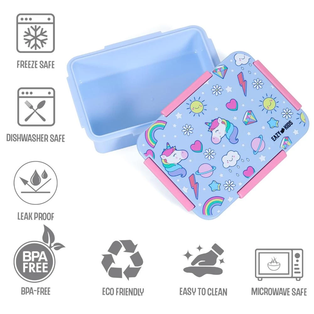 Eazy Kids Lunch Box and Water Bottle Set – Unicorn Blue | Leakproof, Eco-Friendly, Flip Lid Sipper