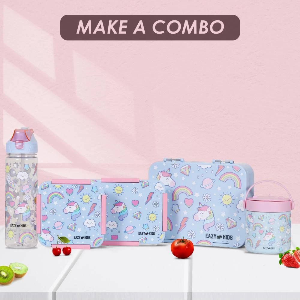eazy kids unicorn lunch box, water bottle lunch combo, flip lid kids bottle, leakproof lunch box for school, kids eco lunch set, bento lunch box for children, BPA free lunchware, reusable school bottle, kids hydration set, matching lunch box and bottle