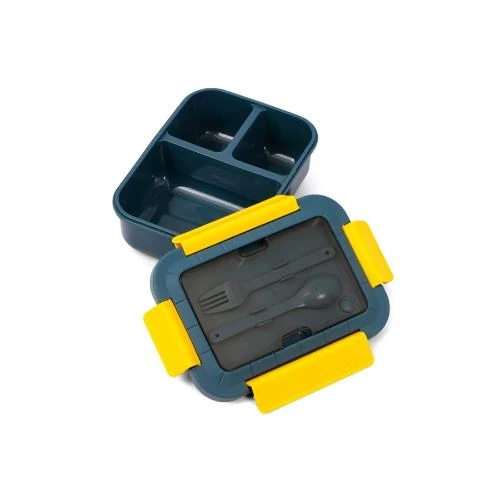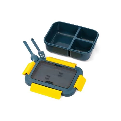 blue kids lunch box, 3 compartment bento box, kids lunch container with spoon and fork, BPA free lunch box, leakproof bento lunch box, eazy kids school lunch box, plastic lunch box for children, kids lunch meal box, blue bento box for kids, toddler lunch container