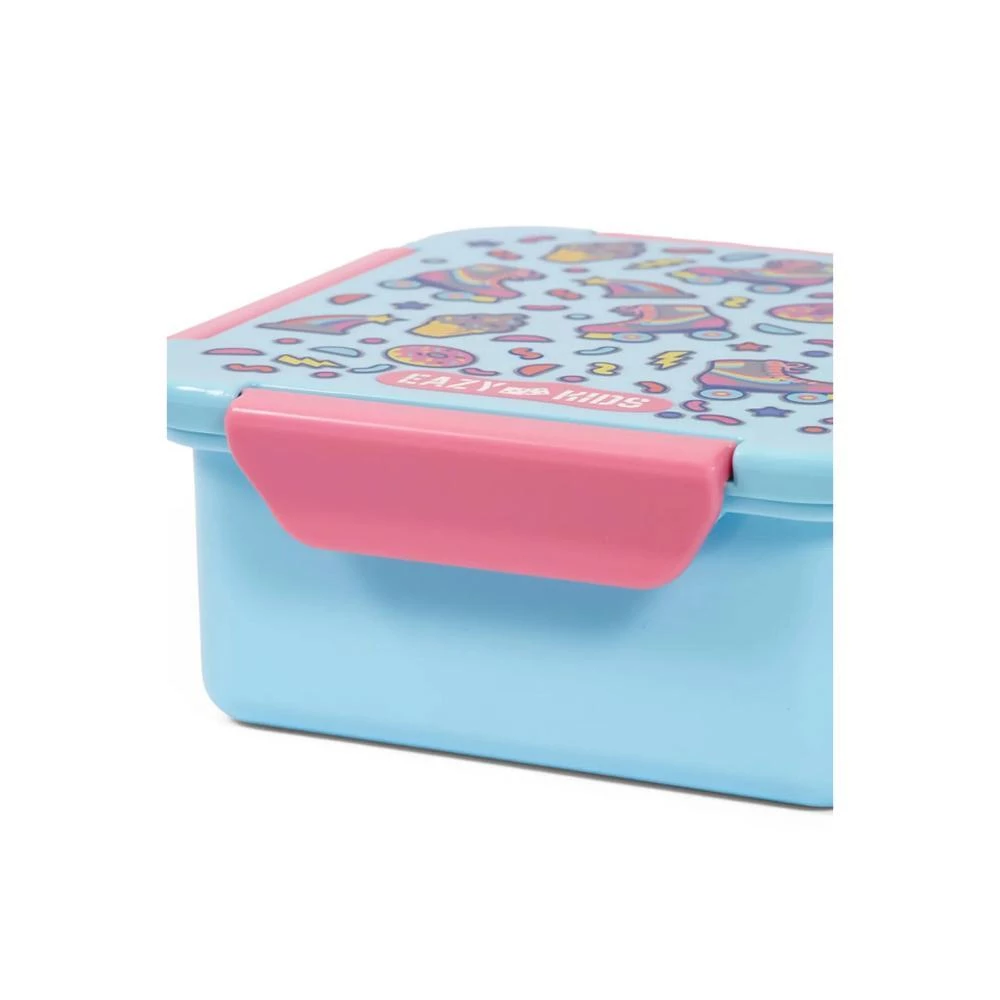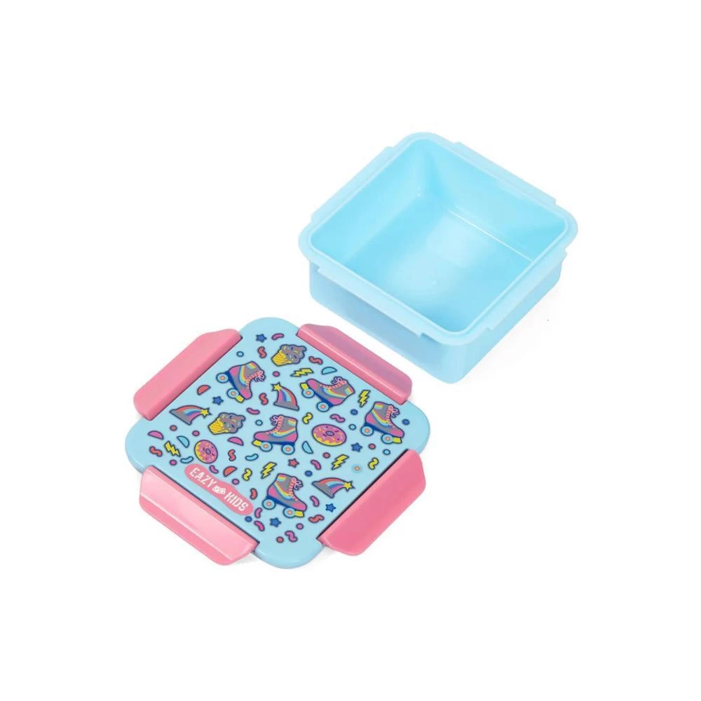 Make mealtime fun and practical with the Eazy Kids Lunch Box - Gen Z Skater in Blue by SAMBOX. This compact 650ml bento-style lunch box is made from BPA and phthalates-free, non-toxic, food-grade, eco-friendly PP material thats safe and easy to clean. It features a smart design with four secure clasp locks and a top layer lined with silicon, making it completely leakproof for thick yoghurts and dips while keeping your childs backpack mess-free. Lightweight and perfect for school, its also freezer safe down to -18°C, dishwasher safe (without the lid, top rack only), and microwave safe (without the lid, up to 100°C). The wide opening makes it easy to pack balanced, nutritious meals, and the colourful skater design brings extra joy to every lunch break. Designed to hold wet foods but not runny liquids like soups, its a great match with Eazy Kids water bottles for a stylish back-to-school set. Product dimensions are 14.5×14.5×6 cm, weighing just 0.17 kg, making it easy for kids to carry every day.