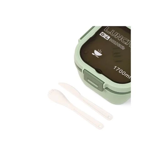Make lunchtime exciting and hassle-free with the Eazy Kids Lunch Box in vibrant green by SAMBOX. Crafted from durable, BPA and BPS-free plastic, this eco-safe lunch box is designed with five thoughtfully divided compartments to help parents pack a well-balanced, nutritious meal. With a generous 1700ml capacity, it's ideal for hearty portions of sandwiches, fruits, snacks, and more. The box includes a high-quality matching spoon and fork, securely nestled inside. Engineered to be completely leakproof, it keeps food fresh and separated throughout the day-perfect for school, travel, or daycare. Its strong, easy-to-clean structure is both practical and fun, and it pairs perfectly with other Eazy Kids accessories like sippers, sandwich cutters, and fruit picks to turn every meal into a joyful experience.
