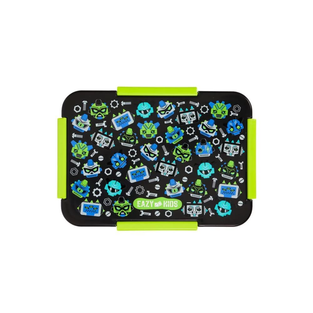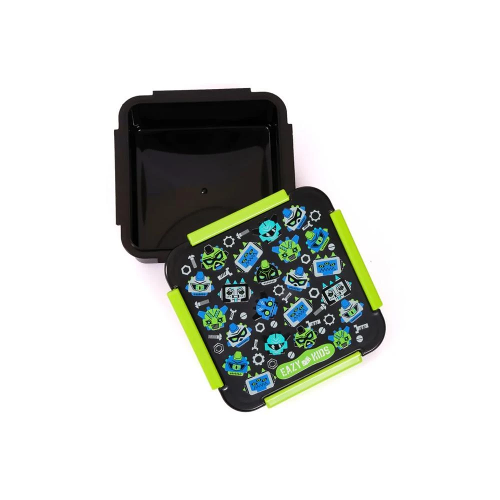 Gen Z black lunch box kids, leakproof kids meal box black, BPA free tiffin box for boys, stylish black lunch box for school, eco-friendly kids lunch set, Eazy Kids Gen Z lunch box, back to school lunch kit black, non-toxic lunch box combo for kids