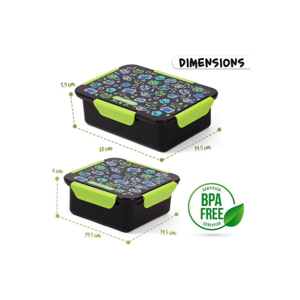 Eazy Kids Lunch Box Set - Gen Z Black 850ml + 650ml Leakproof Kids Meal Box Combo by SAMBOX