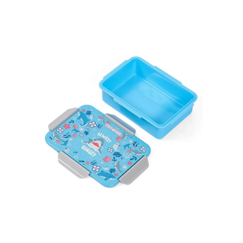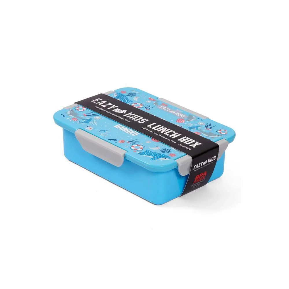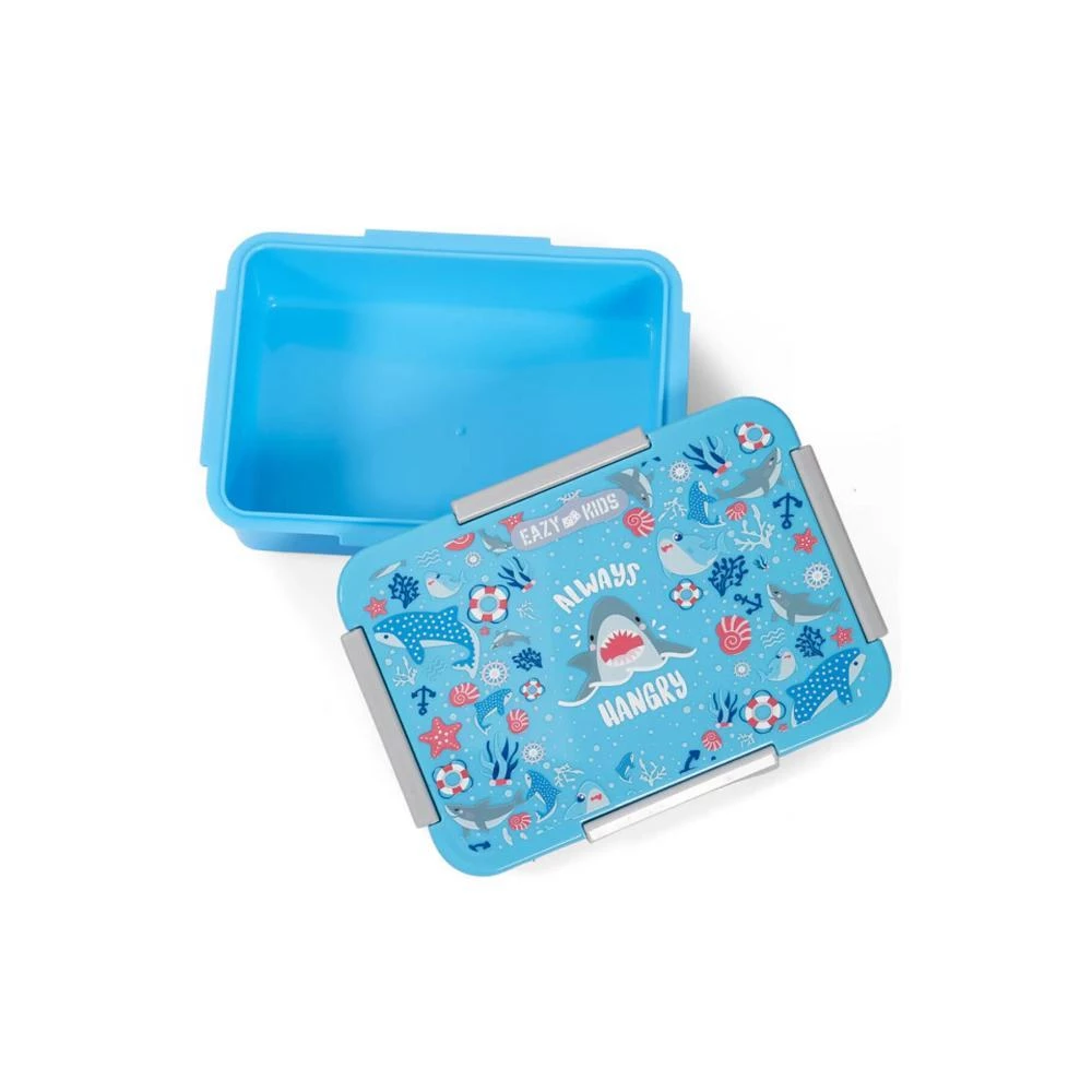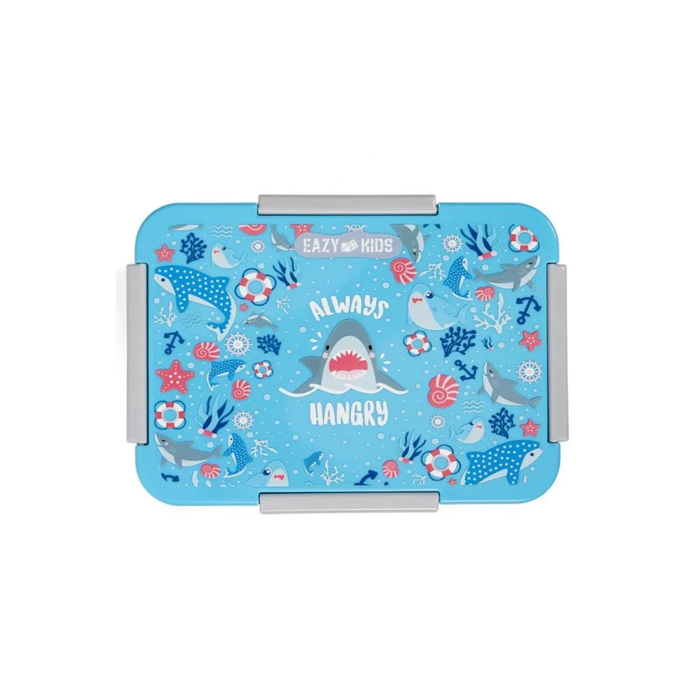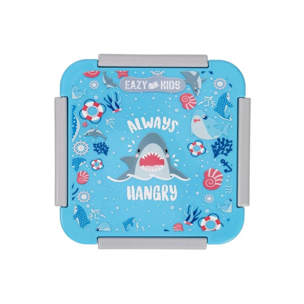 Shark lunch box set for kids, leakproof shark kids lunch box, BPA free kids meal box blue, eco-friendly kids lunch container, blue shark school lunch box, back to school shark lunch box set, Eazy Kids shark lunch kit, kids tiffin box shark design