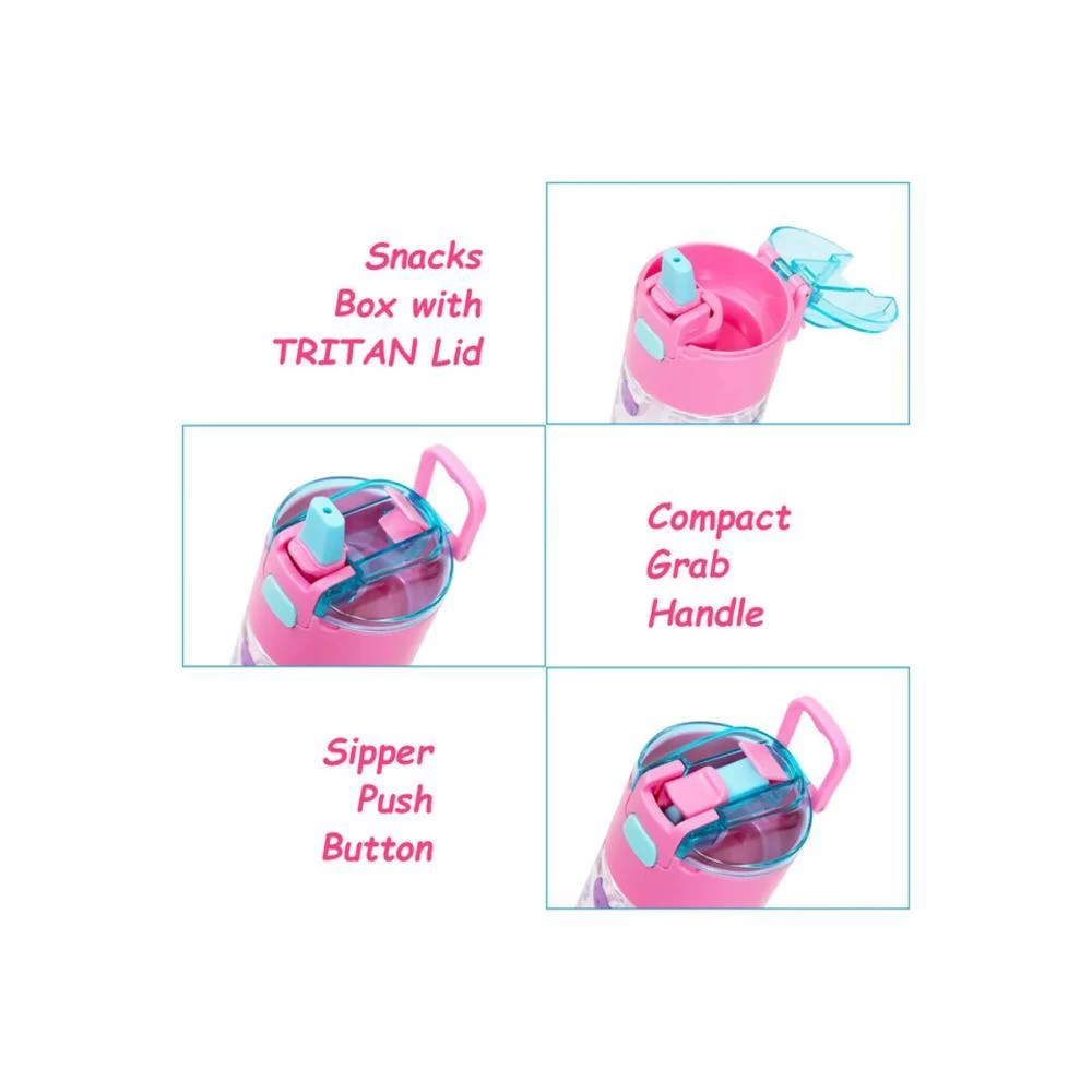 Eazy Kids Lunch Box Set & Tritan Water Bottle with Snack Box - Gen Z Pink 450ml + 850ml Leakproof School Combo by SAMBOX