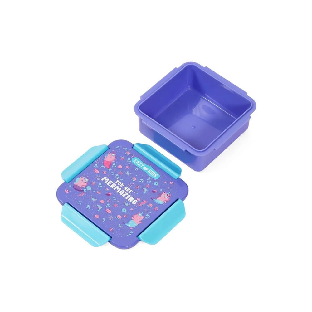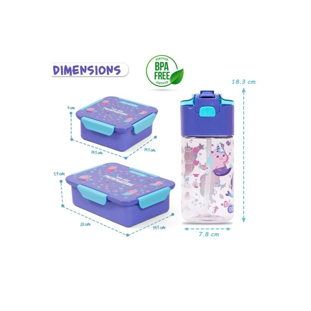 mermaid kids lunch box set purple, kids snack box and water bottle mermaid, BPA free mermaid water bottle for kids, leakproof kids lunch box mermaid design, eco-friendly kids school lunch set mermaid, Eazy Kids mermaid lunch box combo, kids lunch box set with snack box and water bottle, purple mermaid lunch kit for school