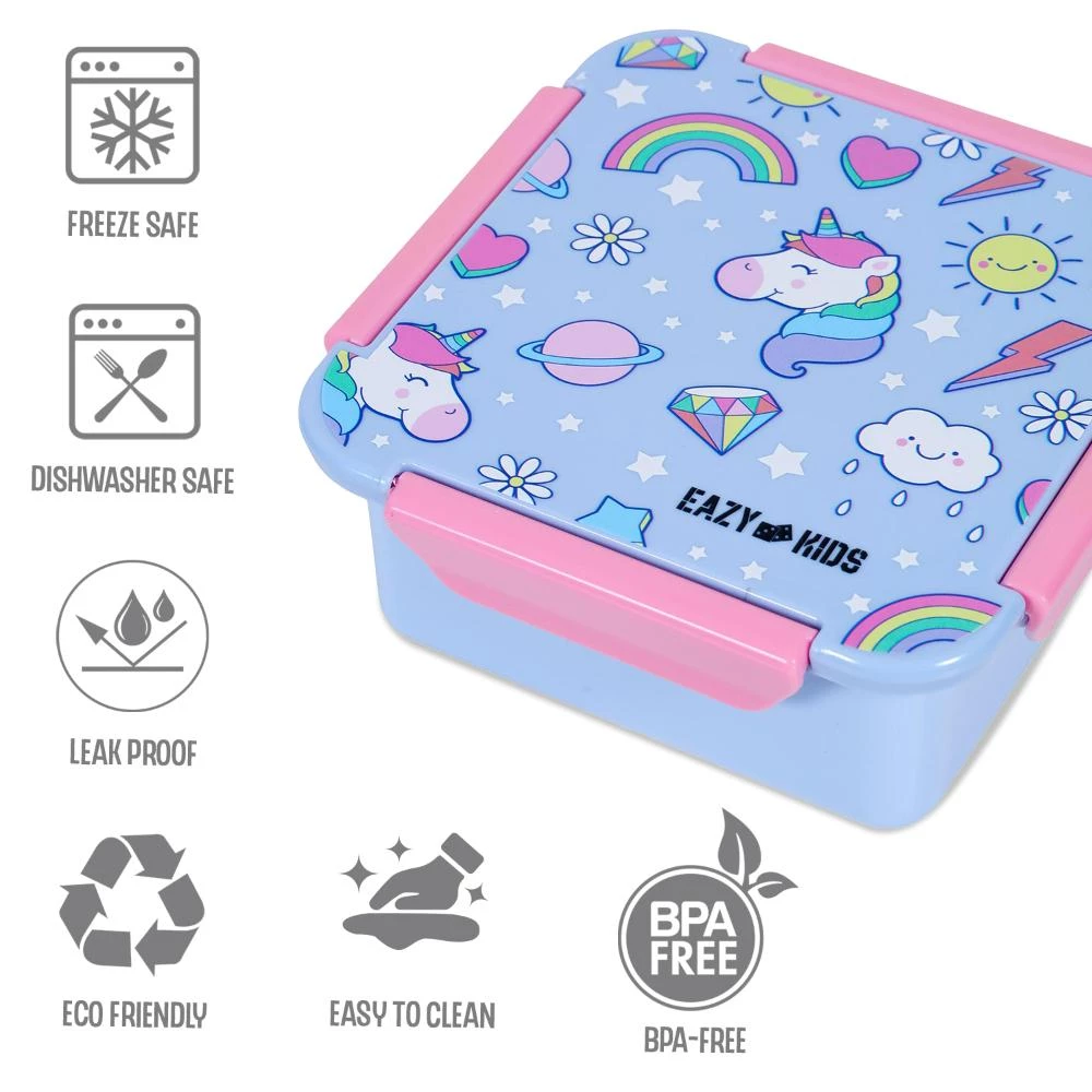 eazy kids lunch box, unicorn lunch set, leakproof school lunch box, kids water bottle, BPA free lunchware, tritan bottle for school, snack box for kids, eco friendly school lunch set, kids hydration bottle, unicorn back to school set