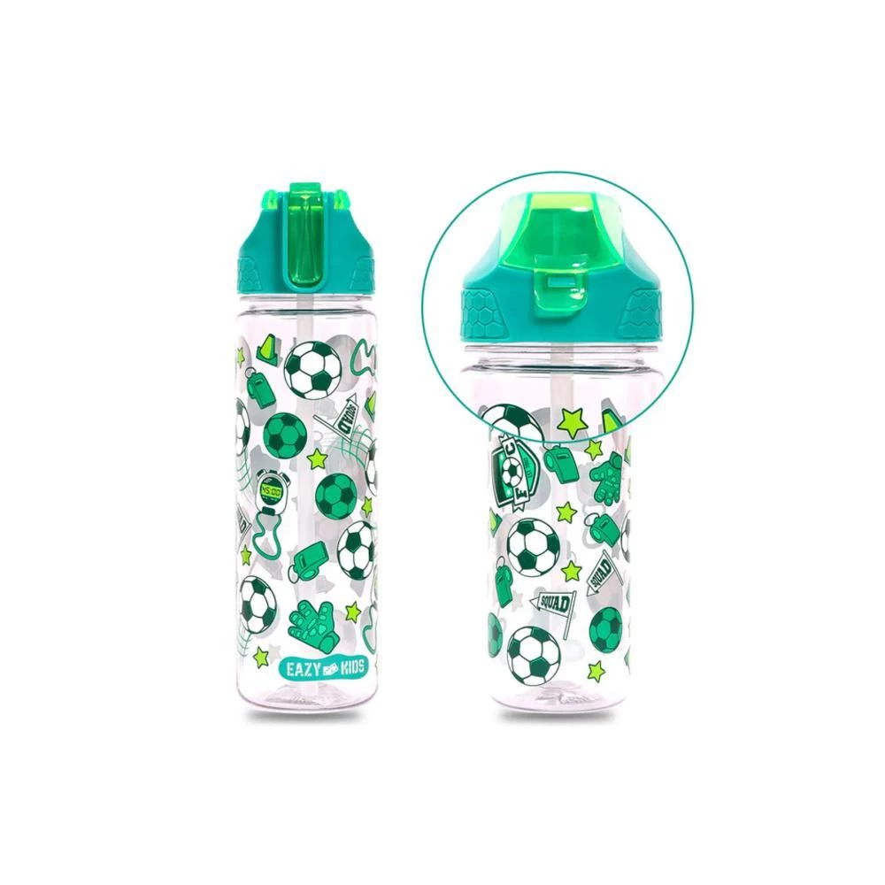 Eazy Kids Lunch Box Set & Tritan Water Bottle with 2in1 Flip Lid and Sipper - Soccer Green 650ml + 850ml Leakproof School Combo by SAMBOX