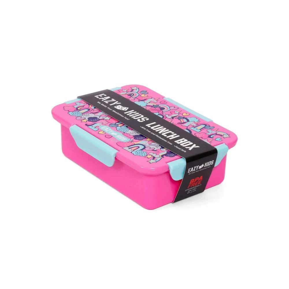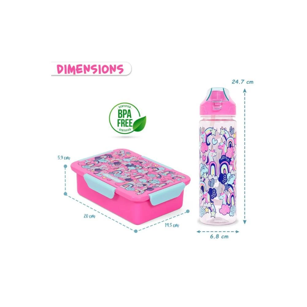 Eazy Kids Lunch Box Set & Tritan Water Bottle with 2in1 Flip Lid and Sipper - Unicorn Pink 650ml + 850ml Leakproof School Combo by SAMBOX