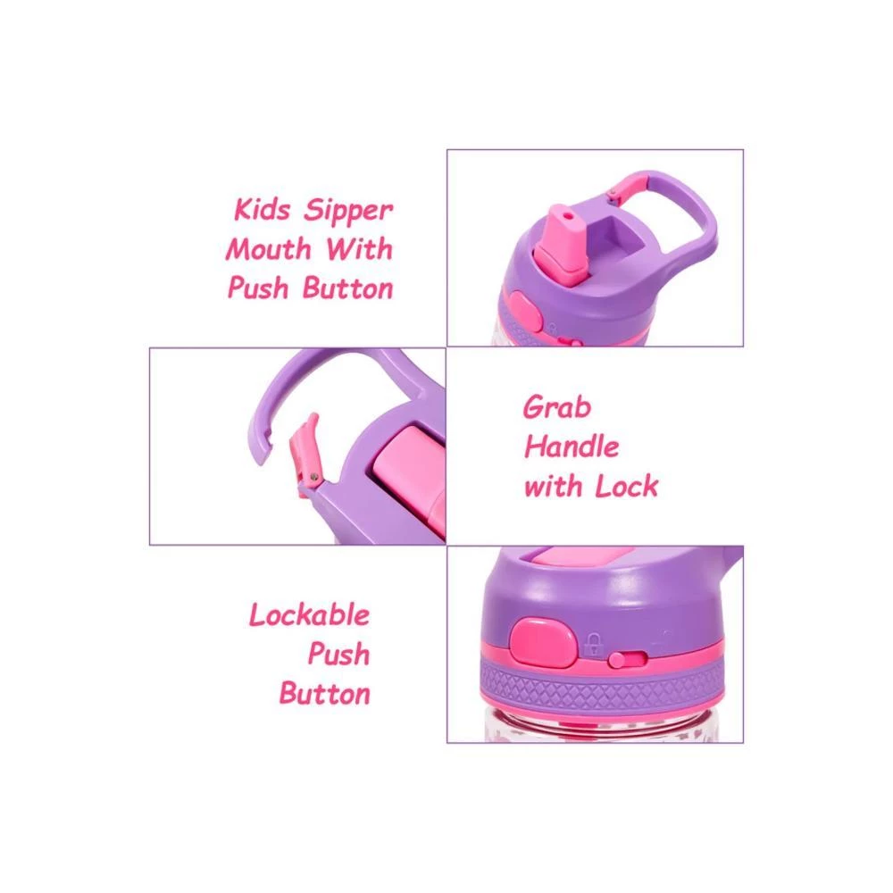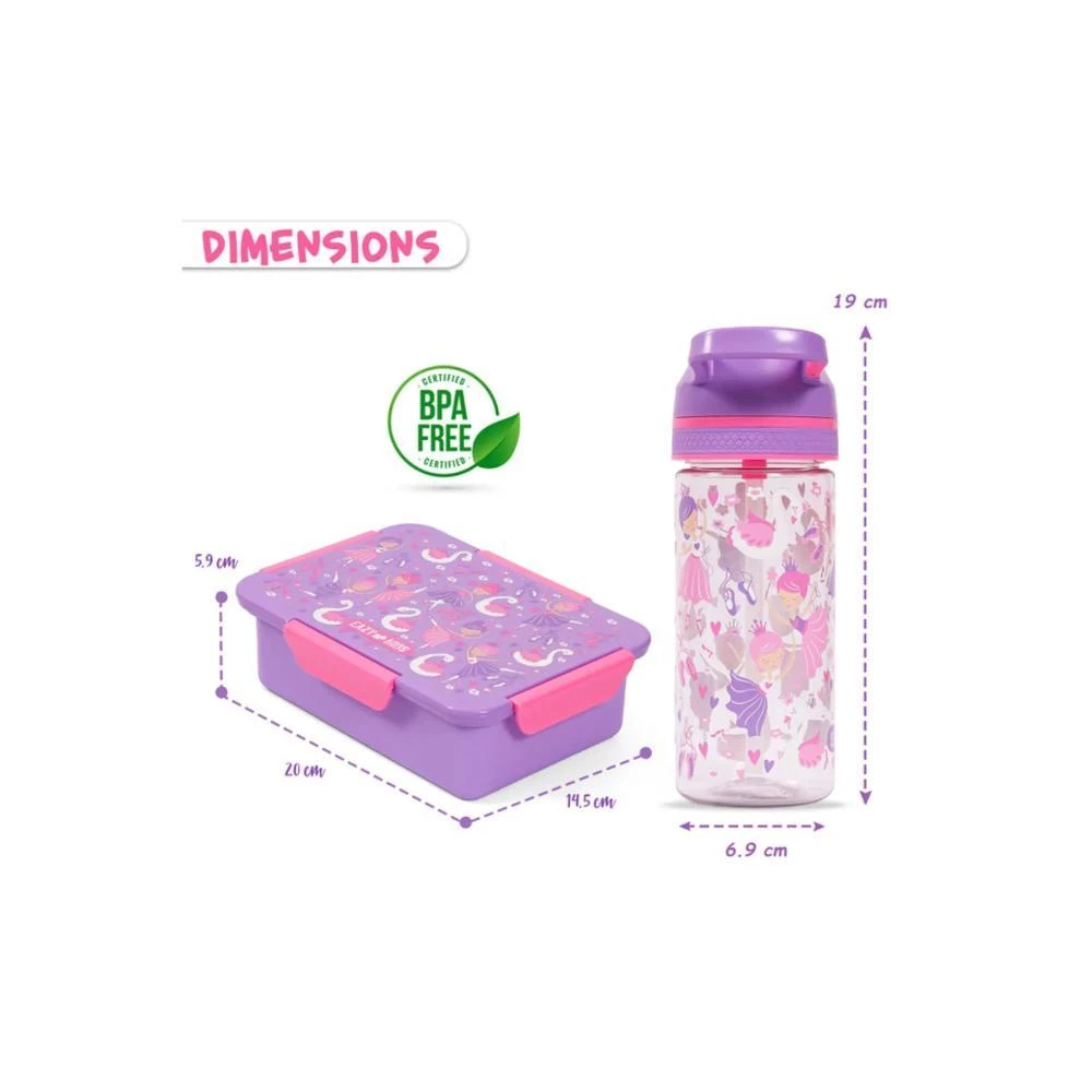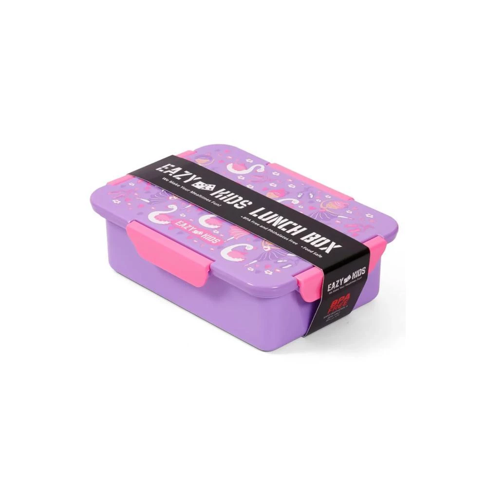 Eazy Kids Lunch Box Set & Tritan Water Bottle with Lockable Push Button & Carry Handle - Tropical Purple 420ml + 850ml Leakproof School Combo by SAMBOX